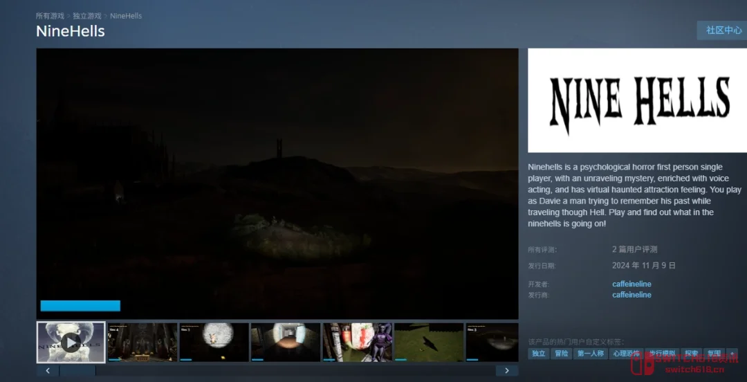 兄弟们!Steam又双叒叕白嫖了!这次是心理恐怖游戏《NineHells》,截止到4月20日之前入库,想入的抓紧了,手慢无!